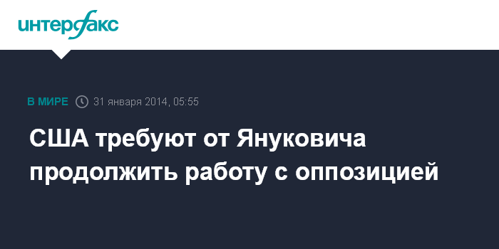 Москва. 31 января. INTERFAX.RU - Соединенные Штаты считают, что, несмотря на плохое самочувствие, президент Украины Виктор Янукович должен продолжить переговоры с украинской оппозицией.