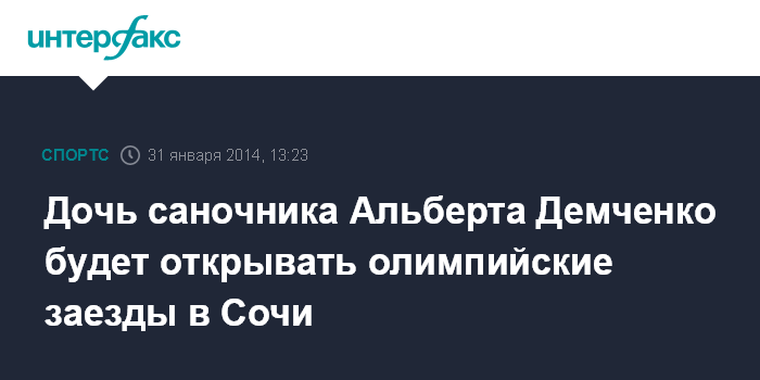 Москва. 31 января. INTERFAX.RU - Виктория Демченко, дочь лидера сборной России по санному спорту Альберта Демченко, во время Олимпиады в Сочи будет выполнять роль открывающей трека.