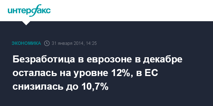 Безработица в еврозоне в декабре осталась на уровне 12%, в ЕС снизилась до 10,7%