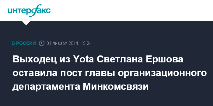 Выходец из Yota Светлана Ершова оставила пост главы организационного департамента Минкомсвязи