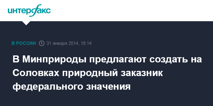 "Минприроды России представило в Минрегион России предложения о включении мероприятий по созданию на Соловецком архипелаге государственного природного заказника федерального значения в ФЦП "Сохранение и восстановление комплекса духовного, культурного, природного наследия и развитие инфраструктуры Соловецкого архипелага на 2014-2019 гг.", - сообщили в пресс-службе.