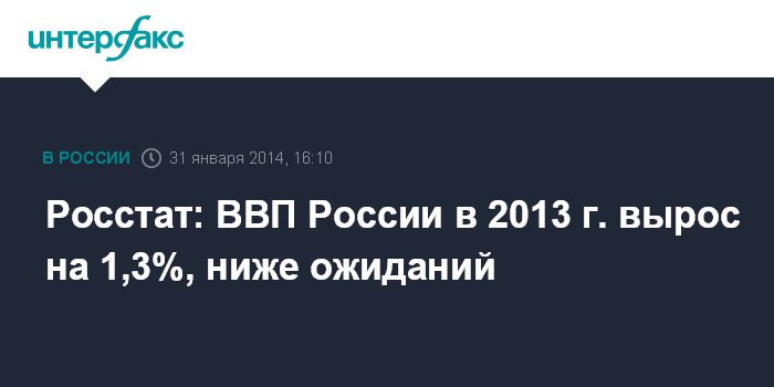 Рост ВВП в 2013 году оказался ниже ожиданий аналитиков (согласно консенсус-прогнозу "Интерфакса", подготовленному в конце декабря) и Минэкономразвития, которые прогнозировали рост по итогам года на уровне 1,4%. Минэкономразвития только в пятницу озвучило оценку роста за 2013 год на уровне 1,3%, до этого министр экономического развития Алексей Улюкаев называл цифру в 1,4%.