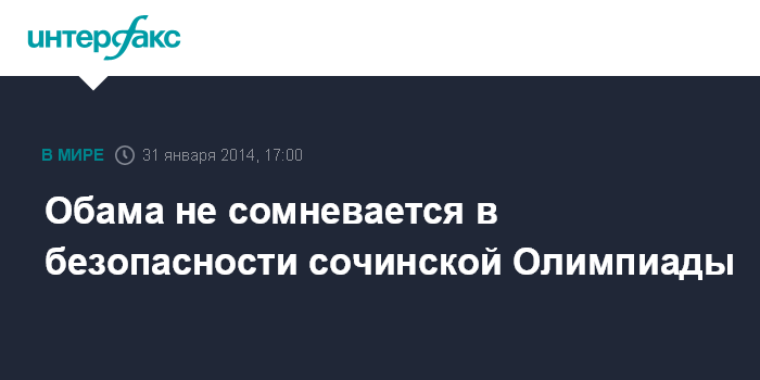 Москва. 31 января. INTERFAX.RU - Президент США Барак Обама заявил в пятницу, что безопасность на зимней Олимпиаде в Сочи будет обеспечена на должном уровне, а также сообщил, что не собирается отговаривать американцев от поездки на Игры.