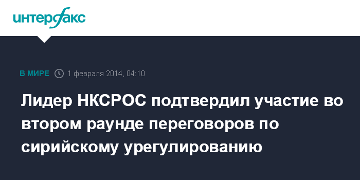 Лидер НКСРОС подтвердил участие во втором раунде переговоров по сирийскому урегулированию