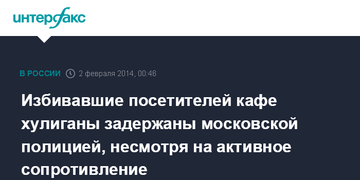 Избивавшие посетителей кафе хулиганы задержаны московской полицией, несмотря на активное сопротивление