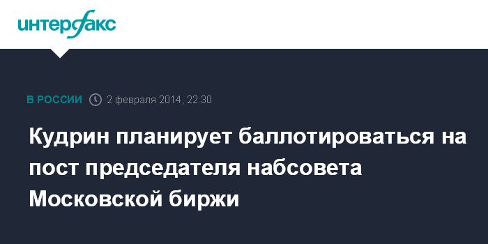 Москва. 2 февраля. INTERFAX.RU - Экс-министр финансов РФ Алексей Кудрин готов баллотироваться на пост главы наблюдательного совета "Московской биржи" (MOEX: MOEX).