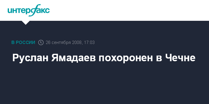 Москва. 26 сентября. INTERFAX.RU - В Чечне в пятницу утром состоялись похороны трагически погибшего 24 сентября в центре Москвы Героя России, экс-депутата Государственной думы Руслана Ямадаева.