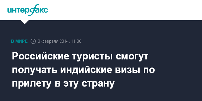 Москва. 3 февраля. INTERFAX.RU - Туристы из 180 стран мира, в том числе России, смогут прибывать в Индию без необходимости запрашивать визу в дипмиссиях этой страны, пишет индийская газета The Indian Express.