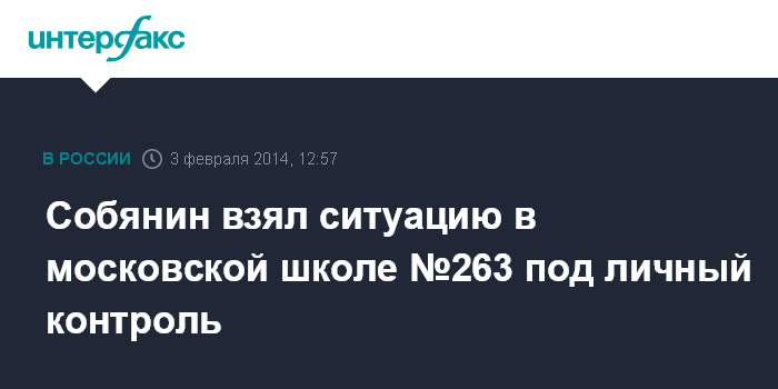 Москва. 3 февраля. INTERFAX.RU - Ситуация в московской школе №263 находится под личным контролем столичного градоначальника Сергея Собянина, сообщила журналистам пресс-секретарь мэра Москвы Гульнара Пенькова.