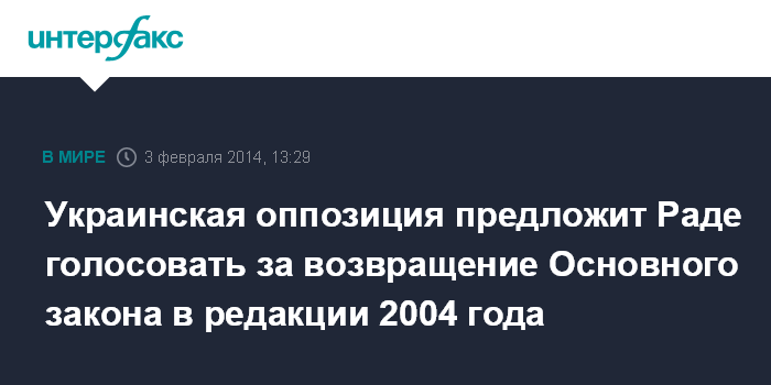 Украинская оппозиция предложит Раде голосовать за возвращение Основного закона в редакции 2004 года
