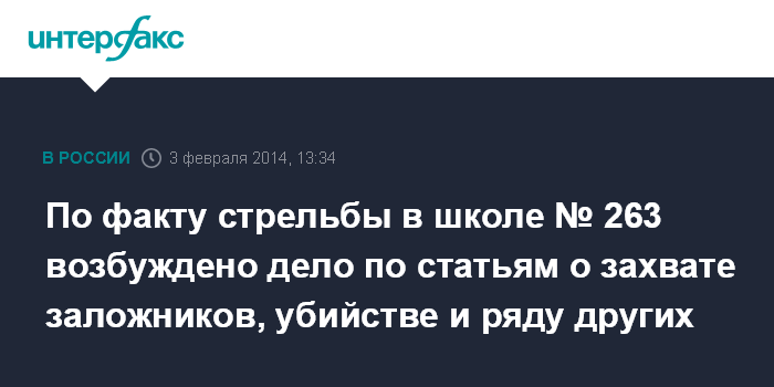 По факту стрельбы в школе № 263 возбуждено дело по статьям о захвате заложников, убийстве и ряду других