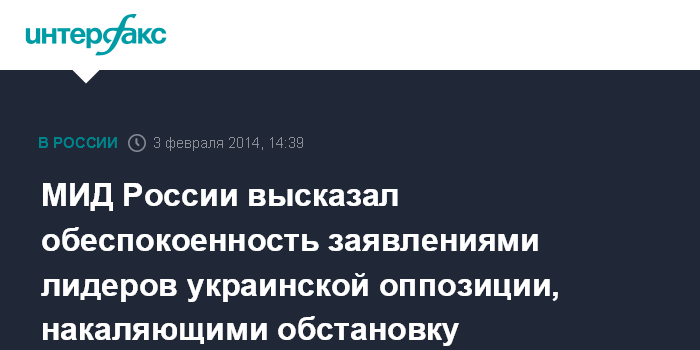 Москва. 3 февраля. INTERFAX.RU - Москва обеспокоена стремлением оппозиции на Украине еще сильнее накалить ситуацию в стране и отмечает, что призывы к созданию "дружин ополчения", патрулированию улиц и организации протестных акций у администраций в регионах противоречат заявлениям о приверженности оппонентов властей демократии, заявили в МИД РФ.