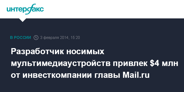 Разработчик носимых мультимедиаустройств привлек $4 млн от инвесткомпании главы Mail.ru