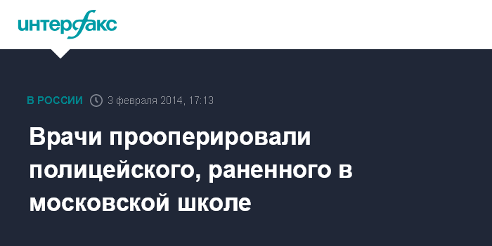 Москва. 3 февраля. INTERFAX.RU - Один из двух тяжело раненных в результате стрельбы в московской школе полицейский прооперирован.