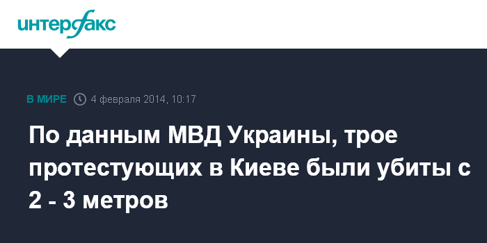 По данным МВД Украины, трое протестующих в Киеве были убиты с 2 - 3 метров