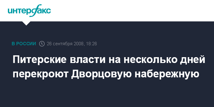 Санкт-Петербург. 26 сентября. INTERFAX.RU - В Северной Столице в связи с ремонтными работами закроется движение по Дворцовой набережной.