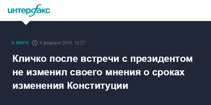 Москва. 4 февраля. INTERFAX.RU - Лидер фракции УДАР Виталий Кличко и президент Украины Виктор Янукович обсудили на встрече во вторник вопрос изменения Конституции; о формировании нового правительства речь не шла.