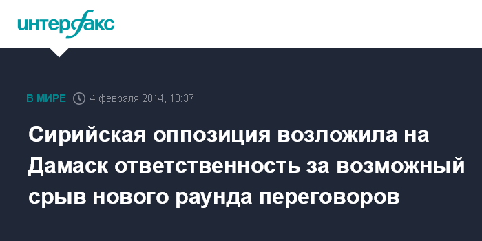 Сирийская оппозиция возложила на Дамаск ответственность за возможный срыв нового раунда переговоров