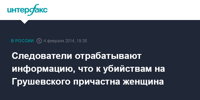 Киев. 4 февраля. INTERFAX.RU - Следователи отрабатывают появившуюся в СМИ информацию, что к убийству на улице Грушевского активиста Михаила Жизневского причастна женщина.