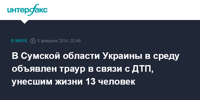 В Сумской области Украины в среду объявлен траур в связи с ДТП, унесшим жизни 13 человек