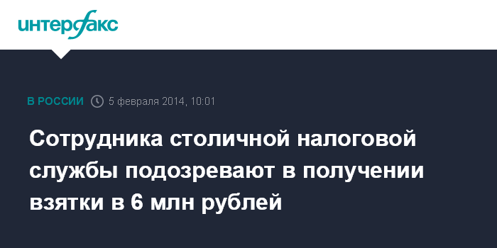 Сотрудника столичной налоговой службы подозревают в получении взятки в 6 млн рублей