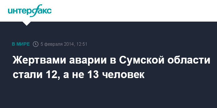 Жертвами аварии в Сумской области стали 12, а не 13 человек