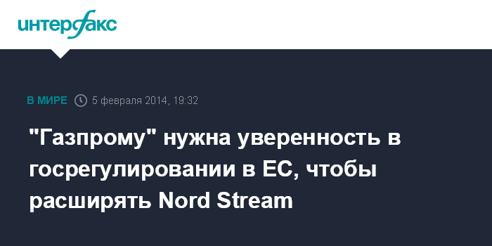 Москва. 5 февраля. INTERFAX.RU - "Газпрому" нужна уверенность в постоянстве правил игры на европейском рынке и гарантии спроса на газ, чтобы решиться на расширение морского газопровода из России в Германию "Северный поток".