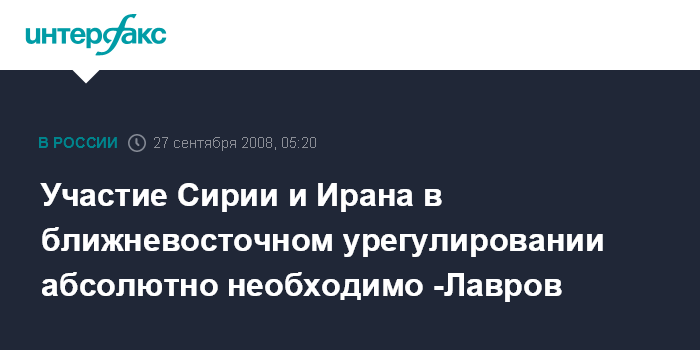 "Нет никаких сомнений, что для надежного урегулирования ближневосточного конфликта по всем его аспектам необходимо вовлекать все страны, которые имеют влияние на тех или иных участников этого конфликта" - сказал С.Лавров.