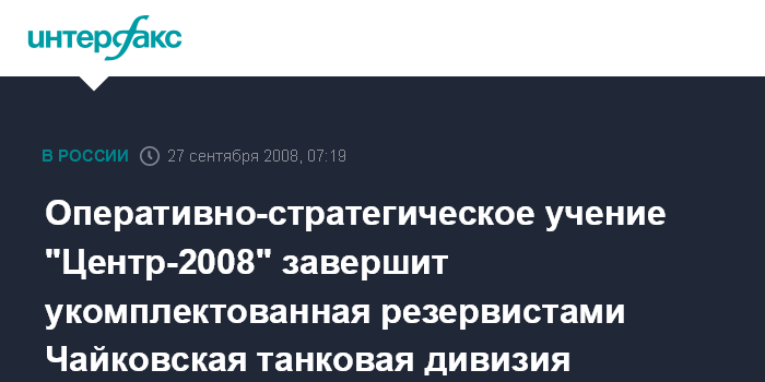 Оперативно-стратегическое учение "Центр-2008" завершит укомплектованная резервистами Чайковская танковая дивизия