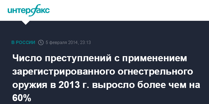 Число преступлений с применением зарегистрированного огнестрельного оружия в 2013 г. выросло более чем на 60%