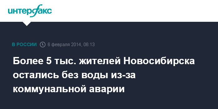 Москва. 6 февраля. INTERFAX.RU - Прорыв трубопровода холодного водоснабжения диаметром 1 м произошел утром в четверг в Дзержинском районе Новосибирска, сообщает Сибирский региональный центр МЧС РФ.