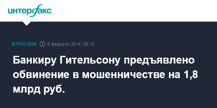 В свою очередь, Гительсон после предъявления ему обвинения в декабре 2013 года вины в инкриминируемом ему деянии не признал. Его адвокат Владимир Захаров накануне заявил "Коммерсанту", что считает комментарии преждевременными.
