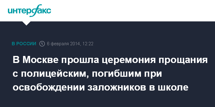 Москва. 6 февраля. INTERFAX.RU - Родные и близкие, руководство МВД и столичной полиции, коллеги простились со старшим сержантом полиции Сергеем Бушуевым, погибшим в понедельник при исполнении служебного долга во время захвата заложников в школе N263 на северо-востоке Москвы.