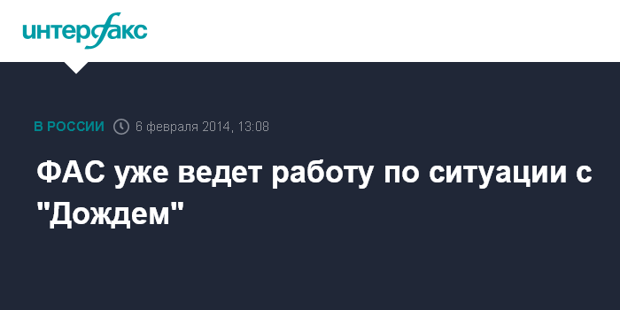 Санкт-Петербург. 6 февраля. INTERFAX.RU - Федеральная антимонопольная служба не позднее чем, через месяц даст заключение по ситуации с отключением телеканала "Дождь" кабельными и спутниковыми операторами.