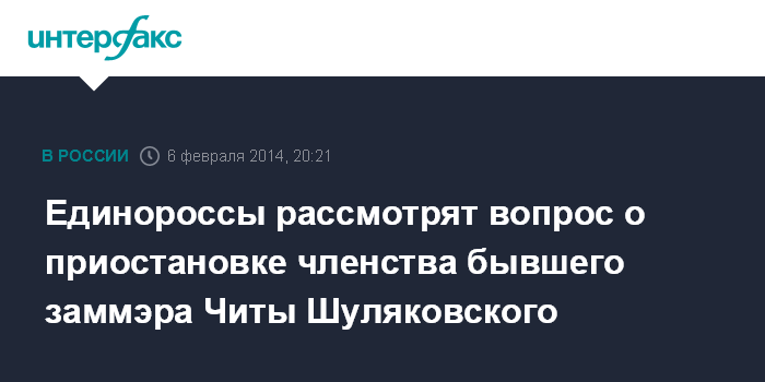 Москва. 6 февраля. INTERFAX.RU - В руководстве "Единой России" заявляют, что заинтересованы в тщательном расследовании всех обстоятельств дел, связанных с задержанием заместителя мэра города Читы Вячеслава Шуляковского.