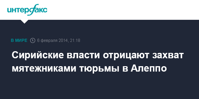 Ранее в четверг турецкое Анатолийское информагентство сообщило, что вооруженные мятежники захватили находившуюся под контролем правительственных войск тюрьму города Алеппо и освободили заключенных.