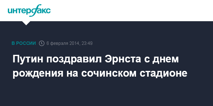 Путин поздравил Эрнста с днем рождения на сочинском стадионе