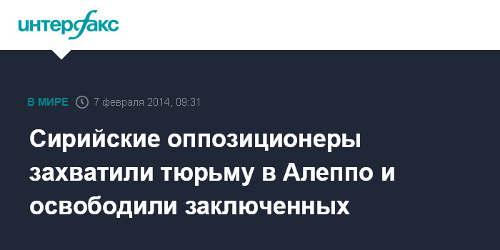 Дубай. 7 февраля. INTERFAX.RU - В Сирии бойцы вооруженной оппозиции захватили находившуюся под контролем правительственных войск тюрьму города Алеппо и освободили заключенных.