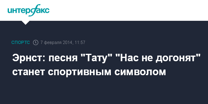 Эрнст: песня "Тату" "Нас не догонят" станет спортивным символом