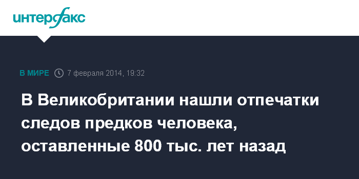 Москва. 7 февраля. INTERFAX.RU - Британским археологам удалось обнаружить отпечатки следов, оставленных около 800 тыс. лет назад группой доисторических людей, сообщает в пятницу The Guardian.