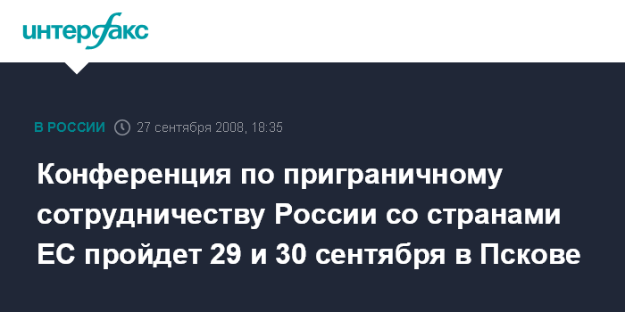 Конференция по приграничному сотрудничеству России со странами ЕС пройдет 29 и 30 сентября в Пскове