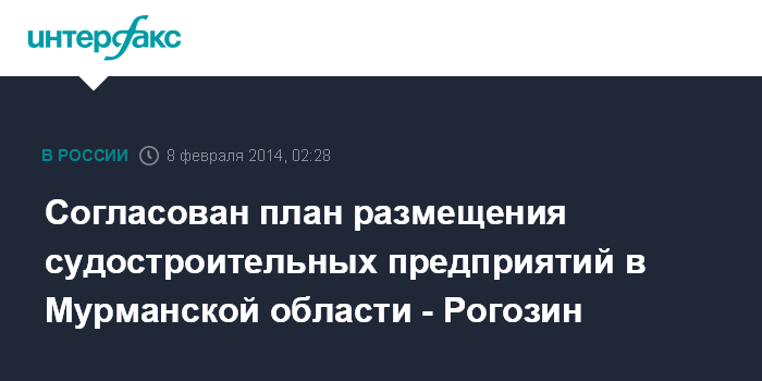 Согласован план размещения судостроительных предприятий в Мурманской области - Рогозин