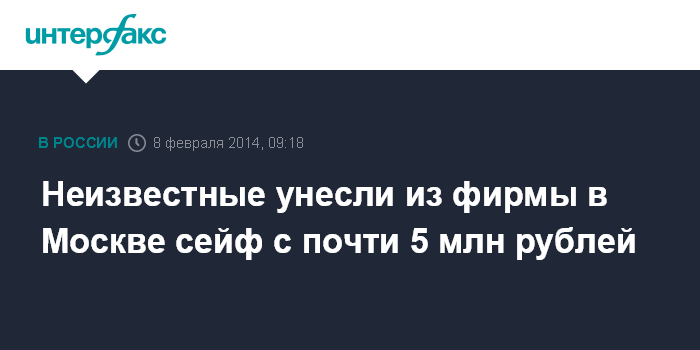 Неизвестные унесли из фирмы в Москве сейф с почти 5 млн рублей