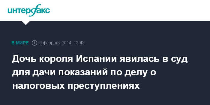 Младшая дочь короля Испании является подозреваемой в деле о коррупции, по которому проходит ее муж Иньяки Урдангарин. Впервые в истории Испании член королевской семьи будет давать показания в суде в качестве подозреваемого в налоговых преступлениях, сообщает телерадиокорпорация.