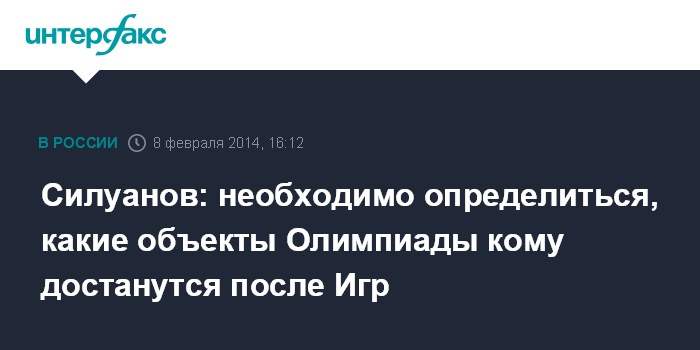Москва. 8 февраля. INTERFAX.RU - После проведения Олимпиады необходимо будет определить принадлежность объектов зимних Игр, заявил глава Минфина РФ Антон Силуанов. "Сейчас будет необходимо определиться, какие объекты кому достанутся и потом уже думать дальше, как их содержать, использовать. Часть объектов может быть абсолютно окупаемой, часть придется поддерживать из бюджета", - сказал А.Силуанов журналистам.