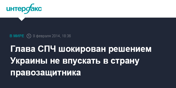 В воскресенье власти Украины отказались впустить члена СПЧ А.Юрова, который является экспертом Московской Хельсинкской группы. А.Юров был отправлен на самолете в Москву. В Киеве он собирался принять участие в международной конференции и встретиться с местным омбудсменом.