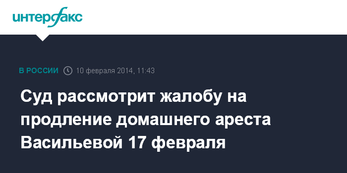В конце прошлого года Мосгорсуд продлил до 23 февраля домашний арест Васильевой, наложив при этом на нее ряд дополнительных ограничений. В частности, суд удовлетворил ходатайство следователя, запретив ей прогулки и общение с представителями СМИ по обстоятельствам уголовного дела, а также пользование средствами связи и интернетом для общения со всеми, кроме адвокатов и следователей.