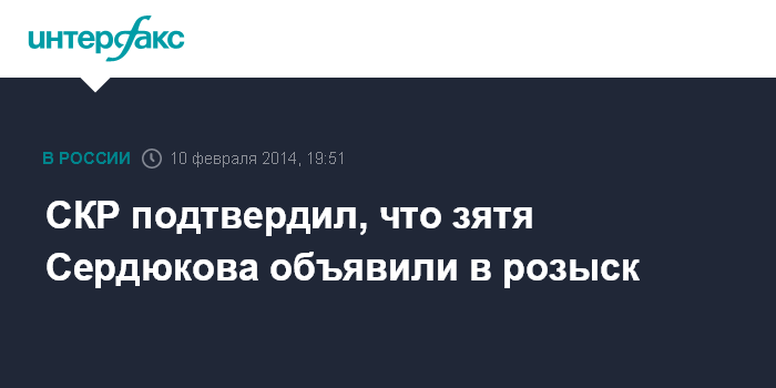Москва. 10 февраля. INTERFAX.RU - Официальный представитель Следственного комитета РФ Владимир Маркин подтвердил, что зять экс-министра обороны России Анатолия Сердюкова, который является фигурантом уголовного дела, объявлен в розыск.