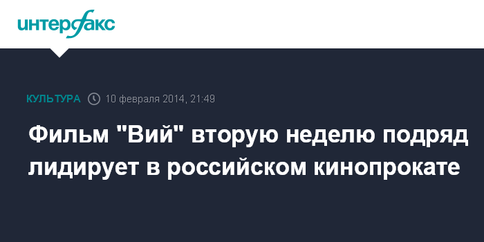 Москва. 10 февраля. INTERFAX.RU - Лидером российского кинопроката вторую неделю подряд становится фильм российского режиссера Олега Степченко "Вий".