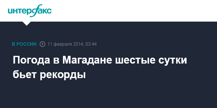 Москва. 11 февраля. INTERFAX.RU - Синоптики в Магадане шестой день подряд фиксируют температурные рекорды, превышен абсолютный максимум февраля.